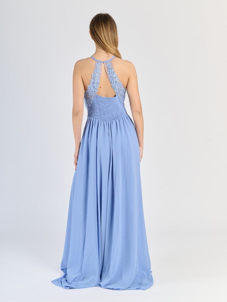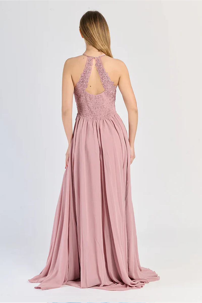 Abito Lungo da Cerimonia con Corpino in Pizzo e Spacco Laterale