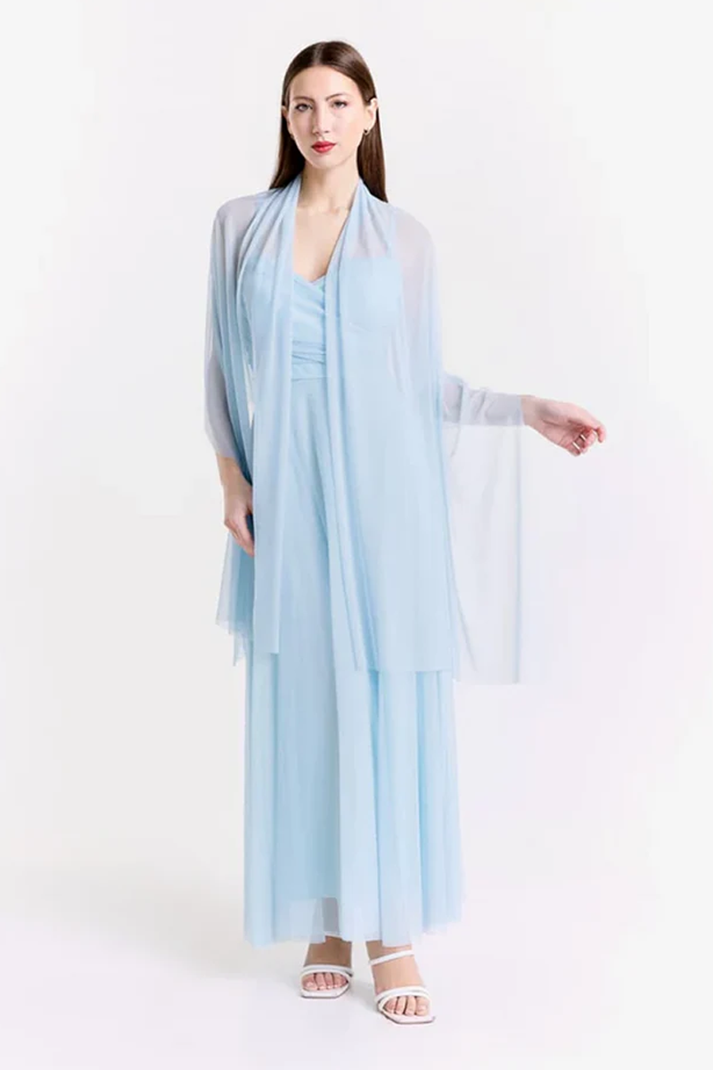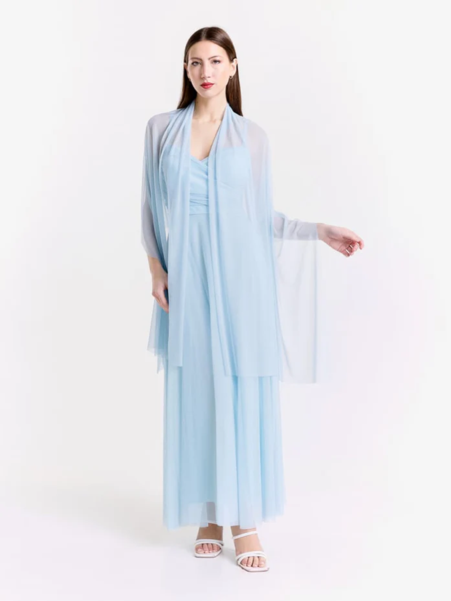 Coprispalle lungo in tulle con maniche ampie